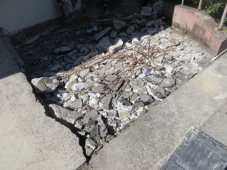 しっかりしているように見えても50年近くも経っているのですから、いろんなところが弱ってきています。実はこのスロープ、以前にも一度打ち直しをしたのですが、やはり下がってきているようなので、造り直すのです。