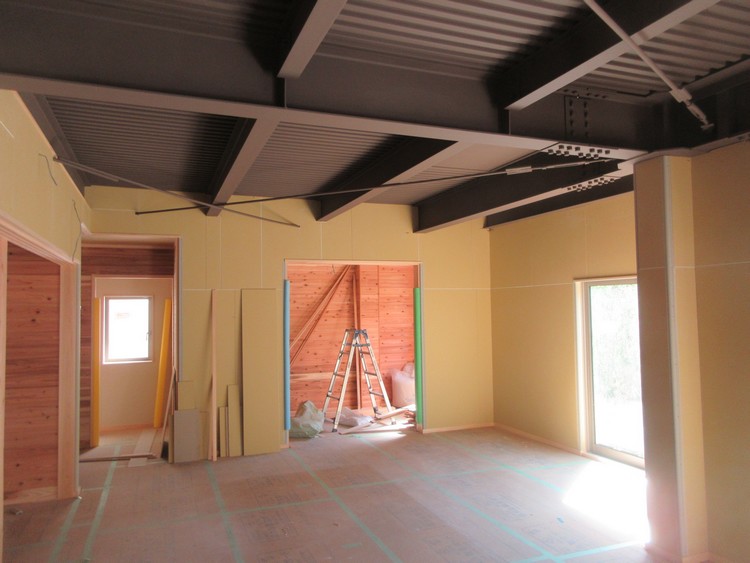 そんな訳で、今回は天井を付けることなく、鉄骨をそのままあらわして塗装仕上げしてしまい、約3,000ミリほどの天井高さを確保します。