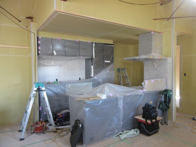 壁の下地が出来て、仕上げ前のこの時期には、キッチンセットも据わります。この家に採用したのはタカラのトレーシアというシリーズです。タカラはオールホーローのキッチンが売りで、お手入れ簡単・高耐久であることが特徴です。下位には木質のグレードも用意されていますが、出来ればタカラならばメーカーとして力を入れているホーローの品物をチョイスすることをお勧めします。