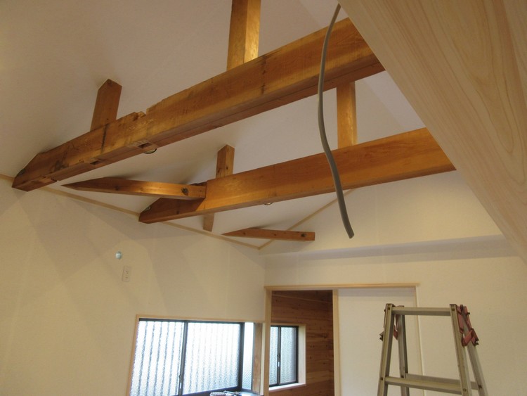 大工、左官の工事はあらかた出来上がった。今後は各設備の器具付けや、木製建具・家具の切り込み・据え付けを残すばかりとなった。