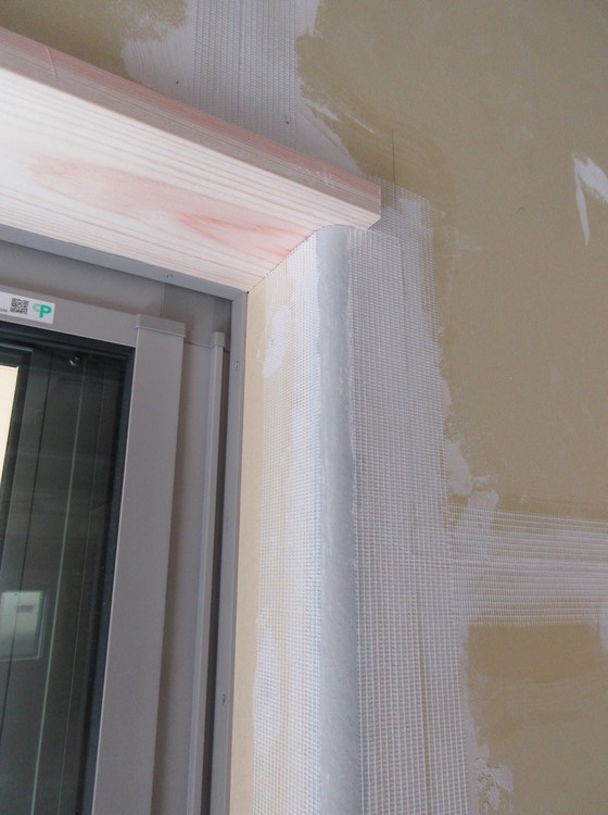 ボードの継ぎ目や大きな段差は、まずパテ埋めしてそこそこに平滑にしておいて、そのうえで本格的な下地造りに入ります。ボードの継ぎ目と同じように、R加工するために入れた役物のヶ所など、後にひび割れしそうなところにはメッシュを張った後にもう一度丁寧にパテ処理して平滑にします。この辺のところがちゃんと出来ているかどうかが仕上げの良し悪しに響くのです。この上に下地塗りをしていきます。