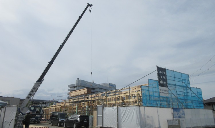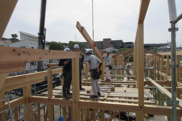 早くに土台を建て込んでから随分と日が経ってしまいました。途中に雨もあり、雨養生に大変な思いをしながらの建て方でしたが、やっと上棟の日を迎えることが出来ました。