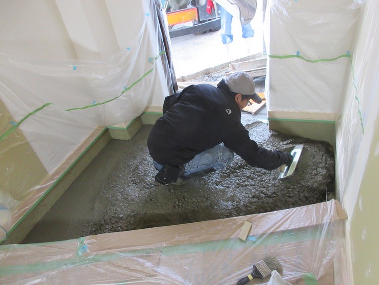 左官さんは特段に専用の定規を使うこともなく、きれいに水勾配を取りながらコンクリートを均していきます。左官仕事はただただ壁を塗っていればいいというものではなく、石積やコンクリート打ち、果ては型枠入れ迄何でもこなします。継承の難しい仕事と言われるのも、仕事内容ばかりでなく、仕事範囲の広さからも想像できます。特に最近は時間と手間のかかる湿式の工法は少なくなるばかりですから益々大変でしょう。
