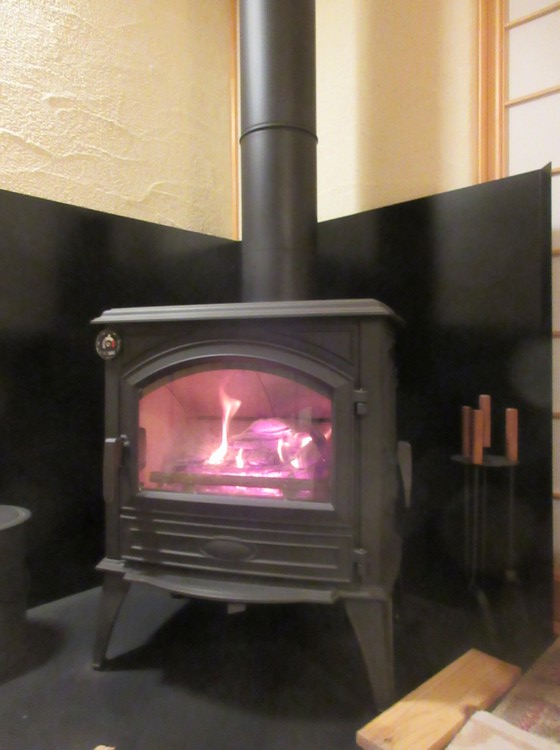 煮込み料理、ピザ焼きなどたくさんの料理が出来ますが、今回は焼き芋を作ります。そのためにはまずストーブそのものの温度を高めなければなりません。もちろん、暖房として焚いているときにはすでに暖まっているので何の心配も問題もありません。木が燃え終わって炎がおさまり、充分に熾(おき)が溜まった頃が芋を投入するタイミングです。