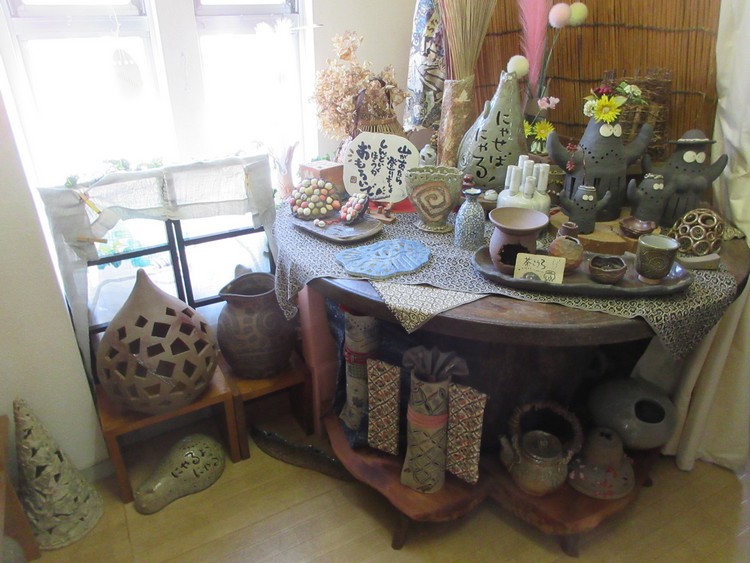 少ない写真では到底ご紹介できないほどの作品の数。服飾デザインなども手掛けられていて、大きなミシンも3台ほどあり、自分たちの着るものなどはお気に入りに任せて作ってしまうということでした。