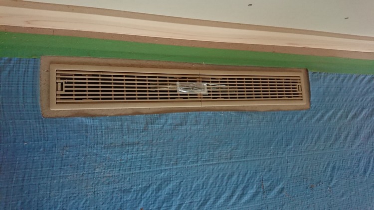 基礎内断熱では床下は外気と切り離され室内と同じ温熱環境となります。写真は床に付いた木製の通気口。これを各所に付けて室内空気を床下に還流させ、床下の温熱・湿気環境を室内同様に適切に保ちます。基礎内断熱では、外周部基礎立ち上がりと、立ち上がりから1メートルの範囲のみの断熱施工です。建物の中心部には断熱材は施工されていませんが、外気から離された地面は冬に暖かく・夏に冷たいため室内の環境も整いやすい訳です。
