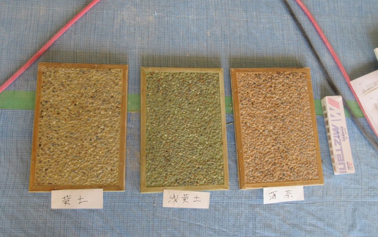 下地がここまで出来てくるとそろそろ仕上げの選択が始まります。仕上げはカタログなどの小さなもので判断しないで、出来るだけ本物に近いものを作ってもらって決めるようにしています。見本品を現場に持ち込んで、臨場感のある所で判断していただきたいのです。