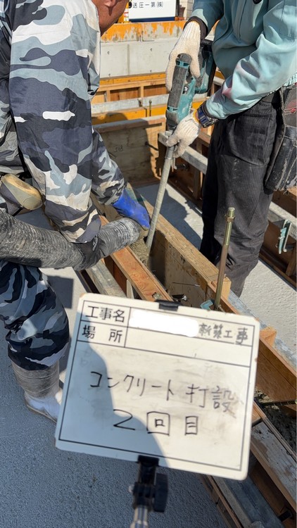 木造建築物の基礎は鉄筋コンクリート造ではありますが、鉄筋コンクリート造建物の柱や梁などの荷重を支える部分とは違い、まだ何の荷重も乗っていないので、型枠も早くに外すことができます。ですから、1回目のコンクリート打設から2回目のコンクリート打設までの間隔は比較的短くてすみます。