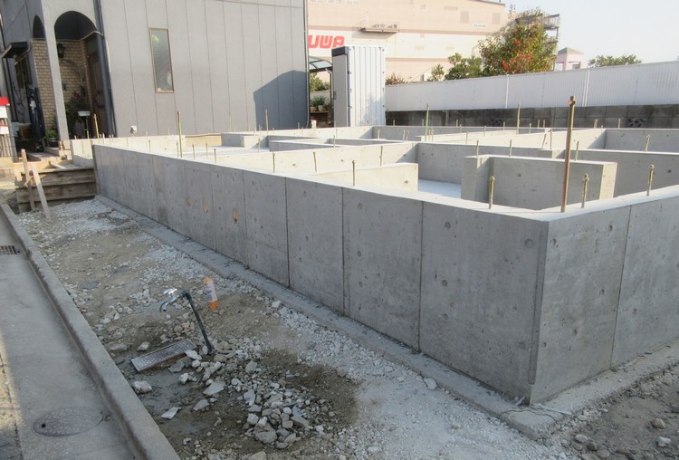 工事(現場)的には、まずスラブ(床)、次に立ち上がり・・・の順番でコンクリートを打設する方が、出来上がった床のコンクリートの上に立ち上がりの型枠が組めるので簡単です。しかし、それでは外回りのスラブと立ち上がりの間に打ち継ぎの目地が出来ます。打ち継ぎ部は水の侵入の可能性のある弱点となるところです。