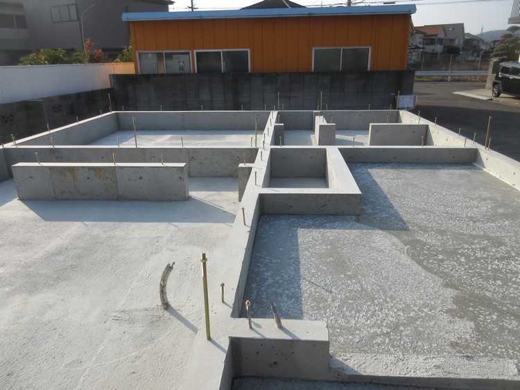 基礎の立ち上がりを地中梁としてしっかりと形造ると、基礎の剛性は飛躍的に向上します。3枚目の写真で中央にある、基礎を4分割するような切り欠きのない十字型の立ち上がりがそれにあたります。