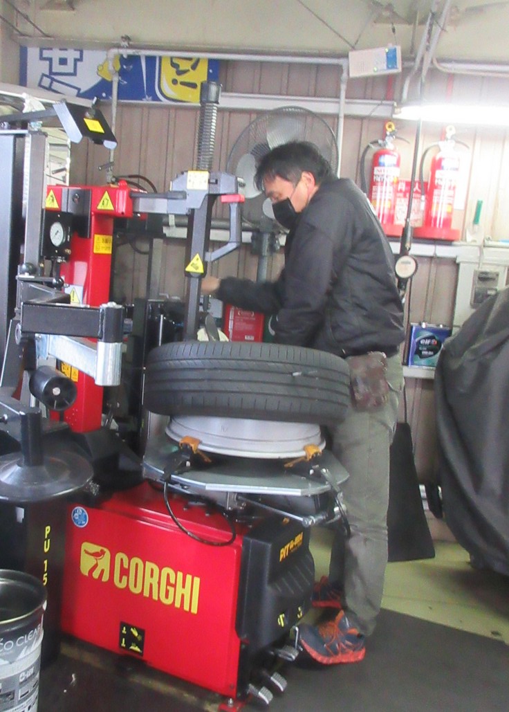 あてゴムをしっかりとくっつけた後には研磨した部分を補修液で補強してもらいます。この後はタイヤをホイールに再セットして、バランス取りも再度行い、元のヶ所にタイヤをセットし直してタイヤ修理の完成です。