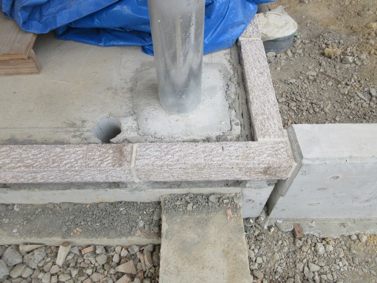 側溝・手すりの取り付け穴・段石・・・とポーチの仕上げ前にしなければならない段取りが全て整いましたので、いよいよ洗い出しの仕上げ準備に入ります。